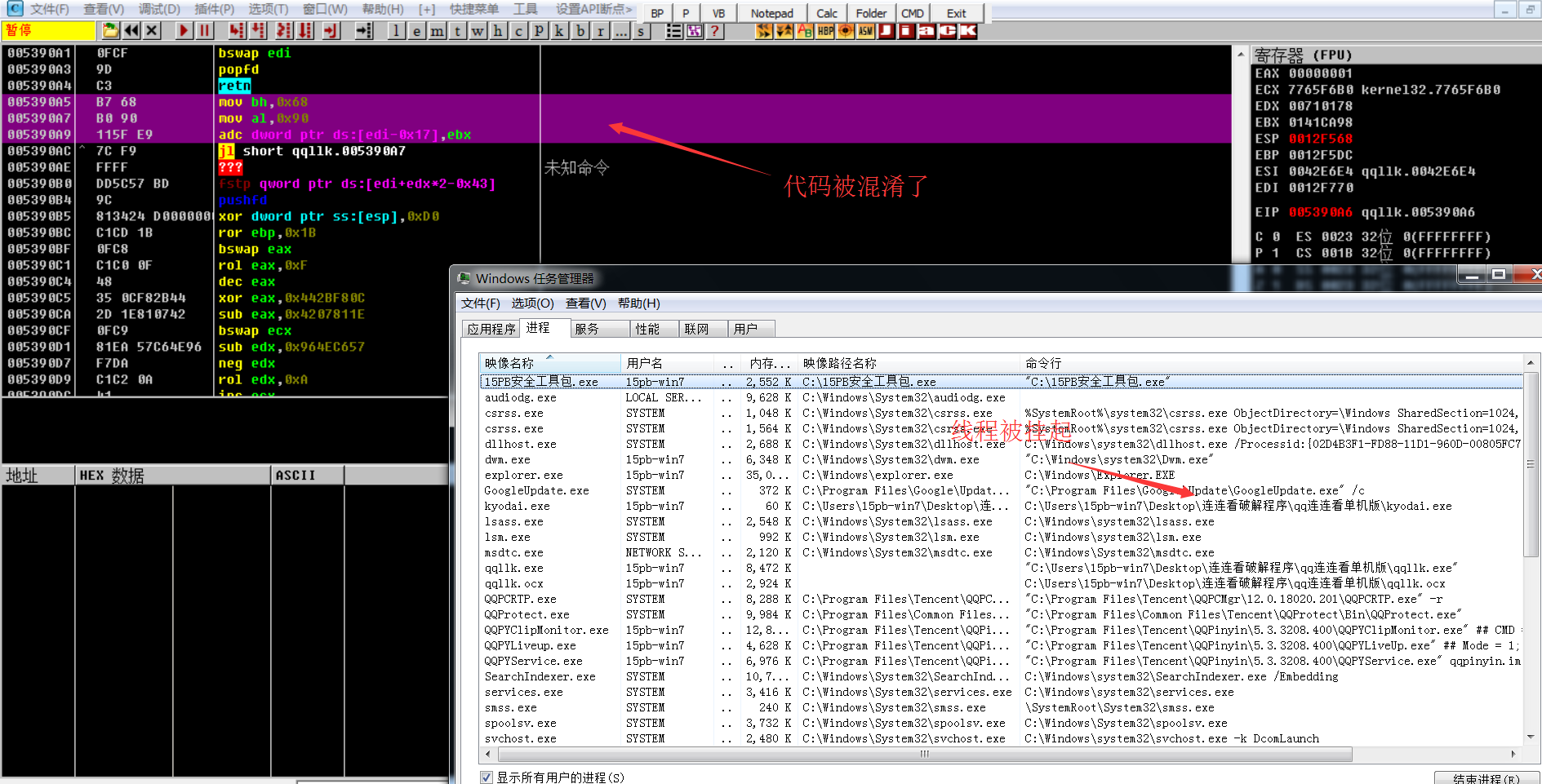 llk.exe(大广告)->llk.ocx(小广告)->kyodai.exe(真正代码,但是它代码给抽取了),套路一层接着一层