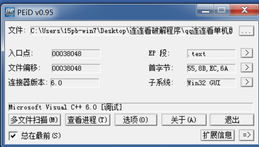 切记:当我们拿到一个程序后先用PE工具全面分析,尽量收集多点信息