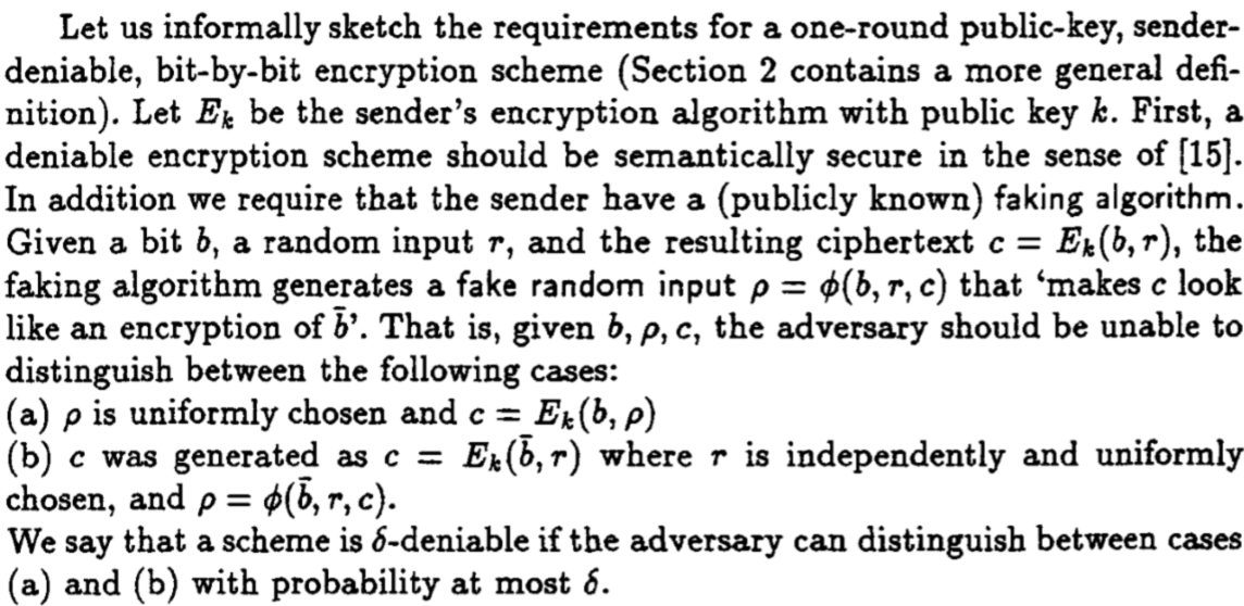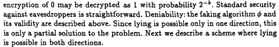 Deniable Encryption(CRYPTO 97') [Ran Canetti, Cynthia Dwork, Moni Noar, Rafail Ostrovsky] 可否认加密