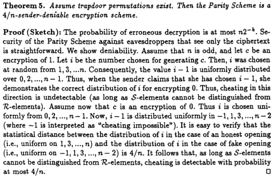 其实这里有一个小问题:按理说发送者可否认协议,难道不应该,由发送者对同一个密文c解密得到明文为m2吗?这里只要求C与真实的m2密文统计接近,或者说,