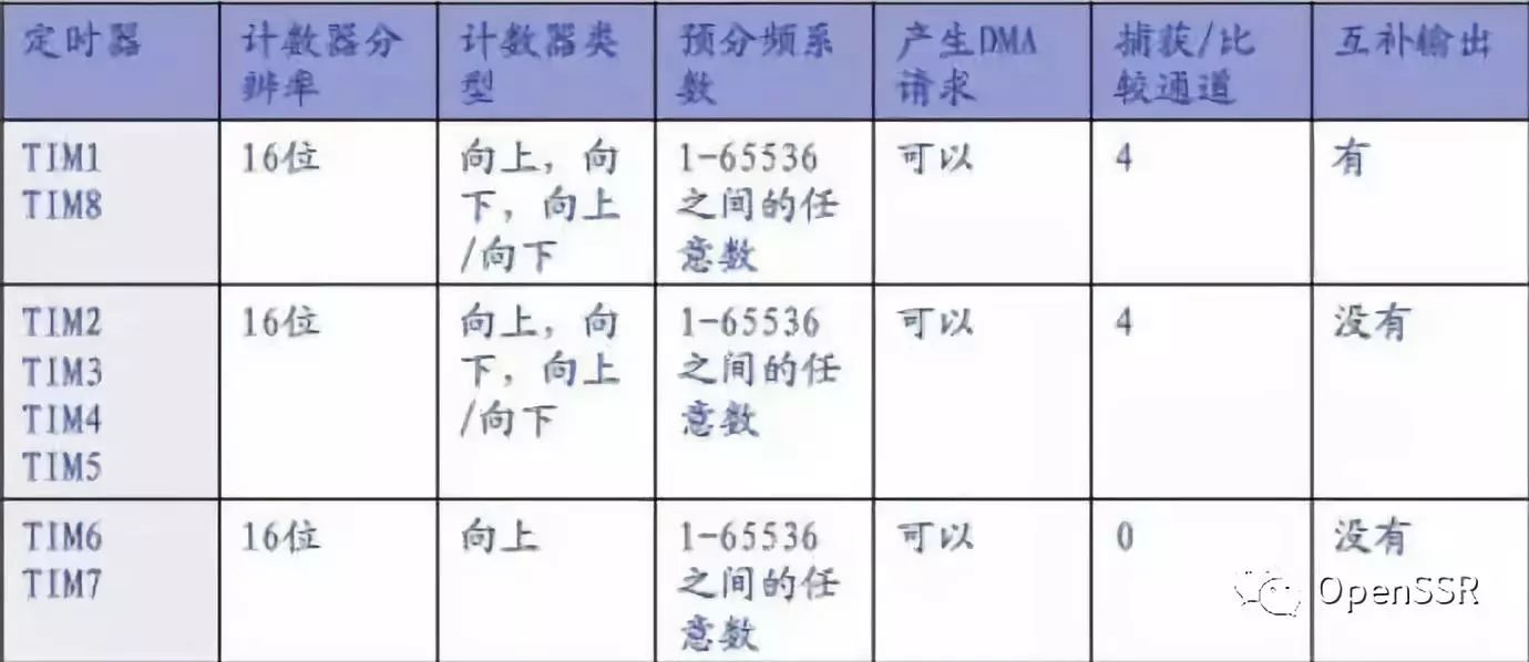 除去看门狗定时器和滴答定时器,其他8个定时器列表: