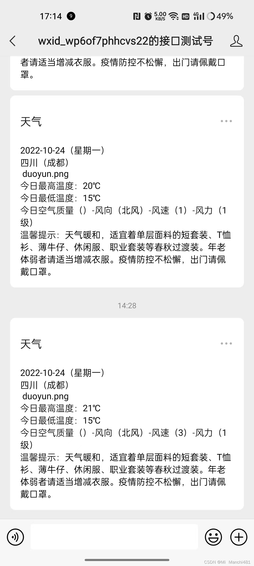 大致在用程序调试之后,返回值:errcode=0, errmsg=ok, msgid=大致这样的就通了