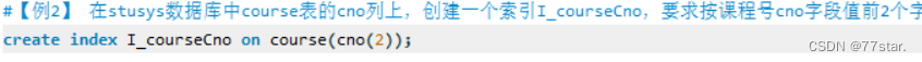 #【例2】 在stusys数据库中course表的cno列上,创建一个索引I_courseCno,要求按课程号cno字段值前2个字符降序排列。