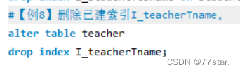 #【例8】删除已建索引I_teacherTname。