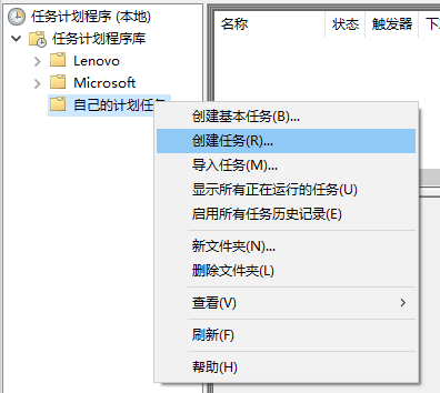 b. 在左边可以看到“计划任务程序库”,可以右击新建一个自己的文件夹,方便管理