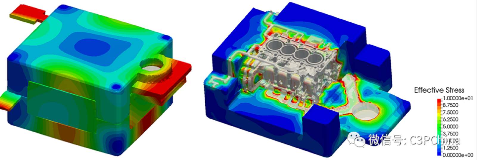 多年来,由于模流软件,主要关注金属液的充型与凝固过程,而对于模具,分析的最多只是循环过程中获得的稳态温度场。Cast-Designer v7.5 去年推出全新模块CDPE,全称(Cast-Designer Performance)。该模块采用了固体力学的三维非线性有限元求解器。经过一年的应用,CDPE的分析对象从铸件,延伸到了模具和后加工过程的力学分析。