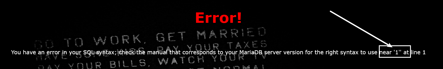 发现报错的回显为:You have an error in your SQL syntax; check the manual that corresponds to your MariaDB server version for the right syntax to use near 'der 1,2,3,4 -- -' and password='1'' at line 1
