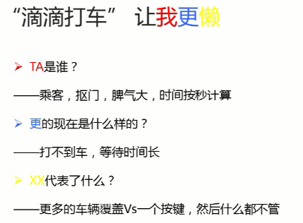 需求是用户在某个场景中的欲望或情愫,本质是我想我让变得更XXX,那满足需求就是让他(用户)变得更XXX。
