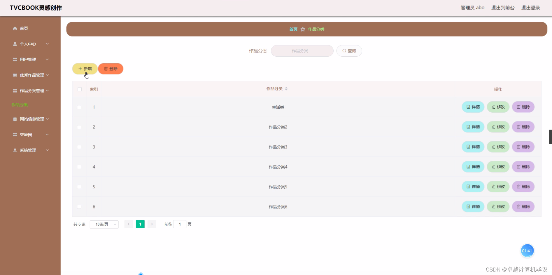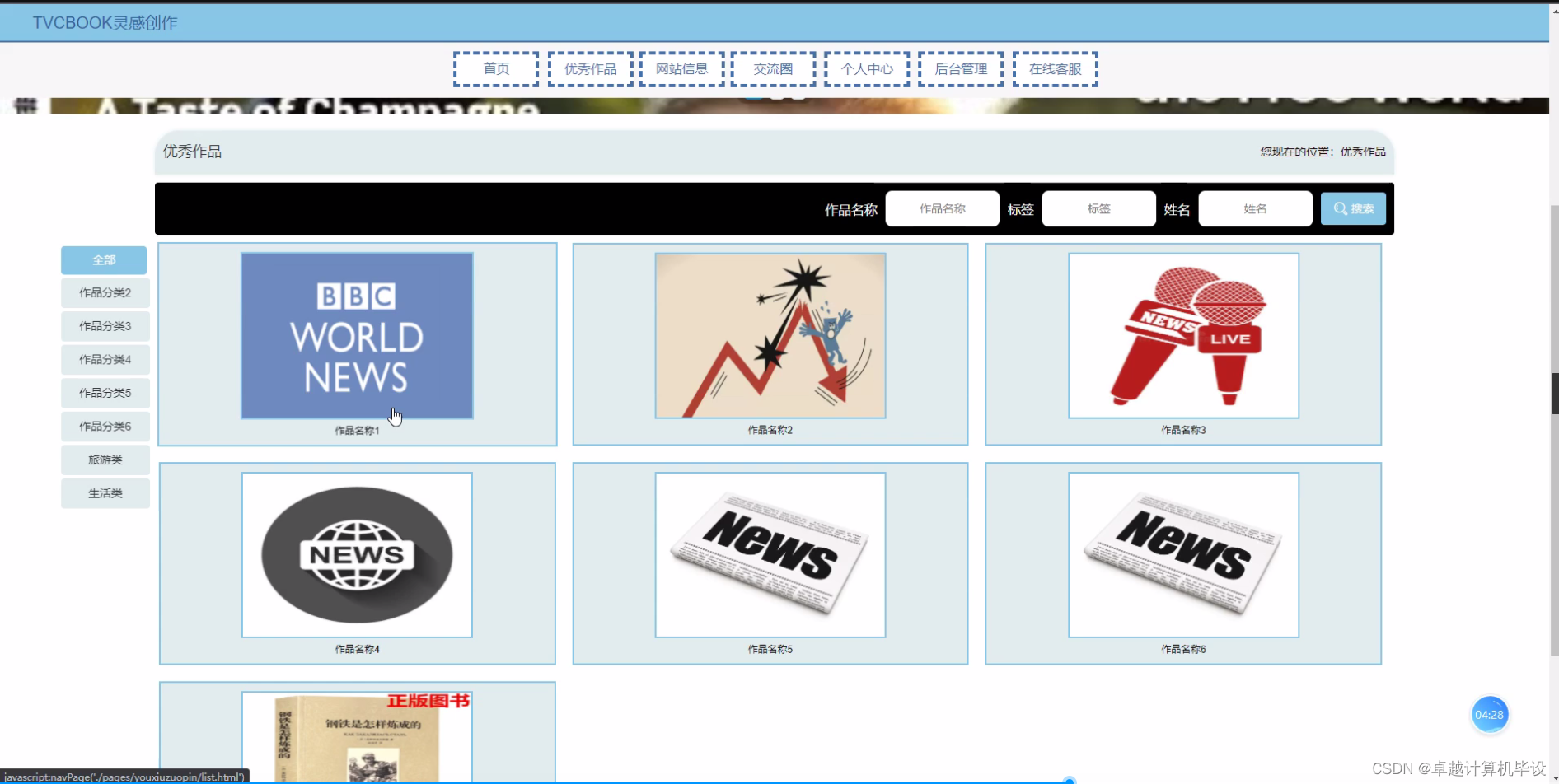 - 作品分类:根据不同的创作类型和主题进行分类,方便用户浏览和筛选感兴趣的作品。