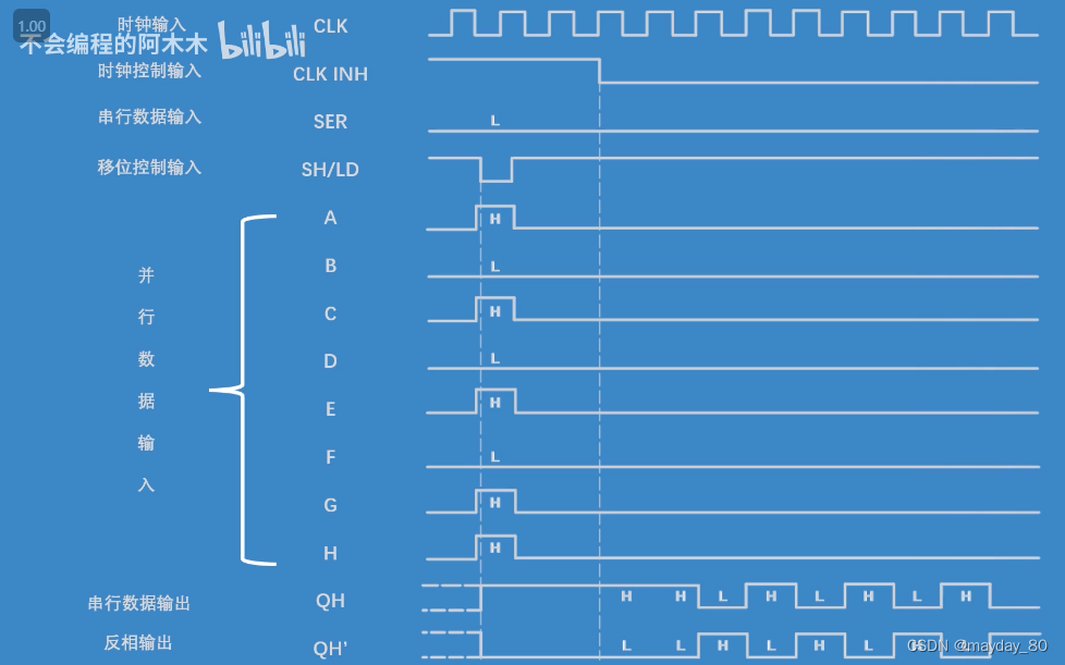 datasheet看出,PL为高,并行输入有效,串行无效,跟时钟状态无关。PL为低,串行输入有效,时钟上升沿一位一位输出。(这里吐槽,真的这个datasheet做得不是很好。很臭。对新手特别不友好。)