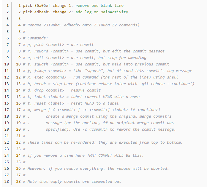 并且,当使用git pull --rebase拉下代码解决冲突后,不需要再commit一次,直接使用git rebase --continue就可以成功完成冲突解决,或者使用git rebase --abort来放弃本次pull。