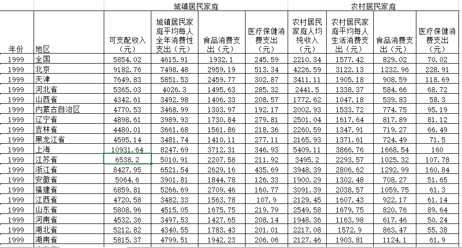全国、各省、地级市居民收入和消费支出情况面板数据1999-2019