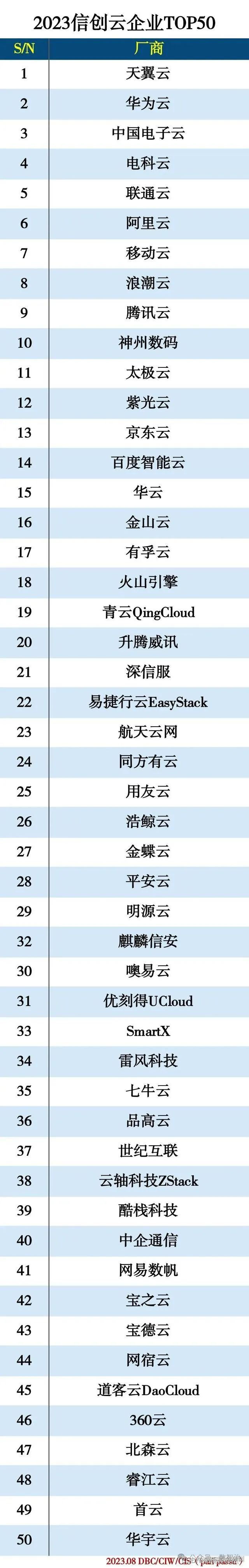 转自:什么是信创云!2023信创云企业TOP50 (.com)