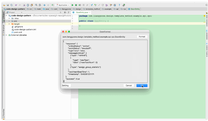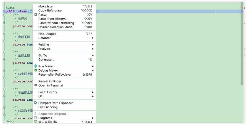 为了测试需要,我们需要将简单 Java 领域对象转成 JSON 字符串方便用 postman 或者 curl 模拟数据。详细使用文档,参考:https://plugins.jetbrains.com/plugin/9686-pojo-to-json
