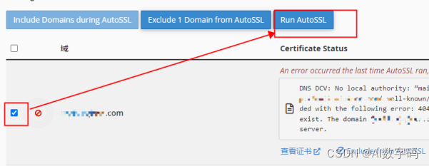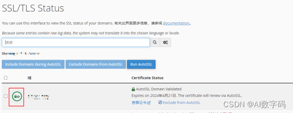 2.登陆cPanel面板后,再里面找到SSL/TLS Status 进入 即可查看以及安装免费SSL。
