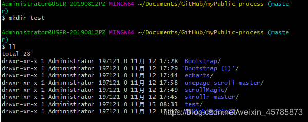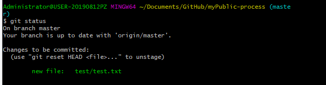 2、进入到本地仓库目录,新建上传的文件(我的所在位置C:\Users\Administrator\Documents\GitHub\myPublic-process)