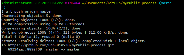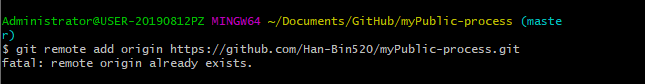 $ git remote add origin https://github.com/Han-Bin520/myPublic-process.git(关联到远程仓库)