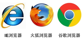浏览器是用来检索展示以及传递web信息的应用程序,市面上比较常见的浏览器有IE浏览器、火狐浏览器、谷歌浏览器、Safari浏览器和欧朋浏览器等,其中IE、火狐和谷歌是目前互联网上的三大浏览器,图1所示为三类浏览器的图标。对于一般的网站而言,只要兼容IE浏览器、火狐浏览器和谷歌浏览器,即可满足绝大多数用户的需求。下面将对三种常用的浏览器进行详细讲解。