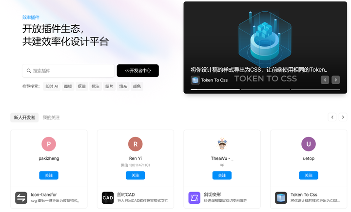 (5)插件:即时设计插件广场有超 160+ 好用的插件能直接使用,可以自动化或简化设计过程,还支持开放插件API。