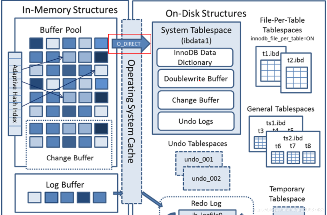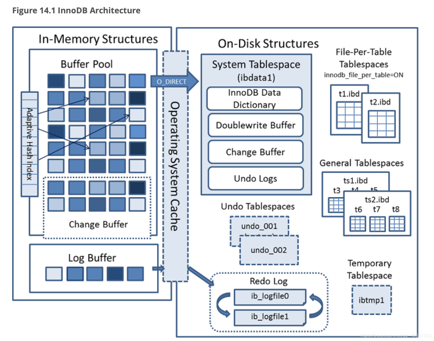从官方文档的innodb结构图看,O_DIRECT应该是不会过操作系统缓存,fsync应该就是要过OS cache。mysql官网对这个描述不多。先放着,下次研究IO的。