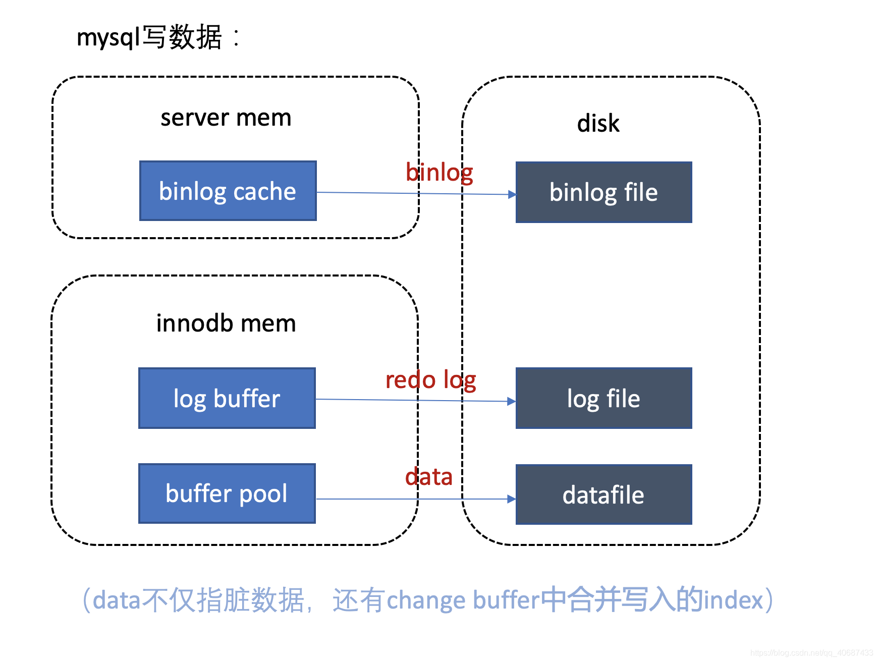 mysql刷脏数据在写redo之后,逻辑跟oracle一致,checkpoint/commit->内存中的redo到redolog文件->内存中的脏数据到数据盘。