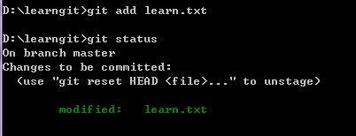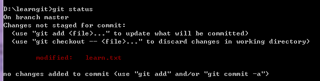 当然在没有添加到版本库之前,我们还可以使用git diff learn.txt 来查看修改的内容,