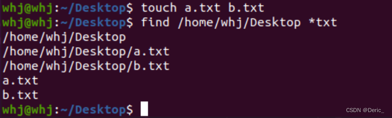 例子:find .-name 'abc * txt' 在当前目录及子目录下查找名称为abc开头的txt文件,如下图所示