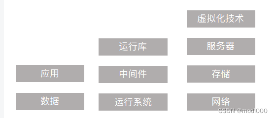 而中间的这些,就是利用最右边的基础设施搭建出的平台,从而承载最左边的【应用】和【数据】。