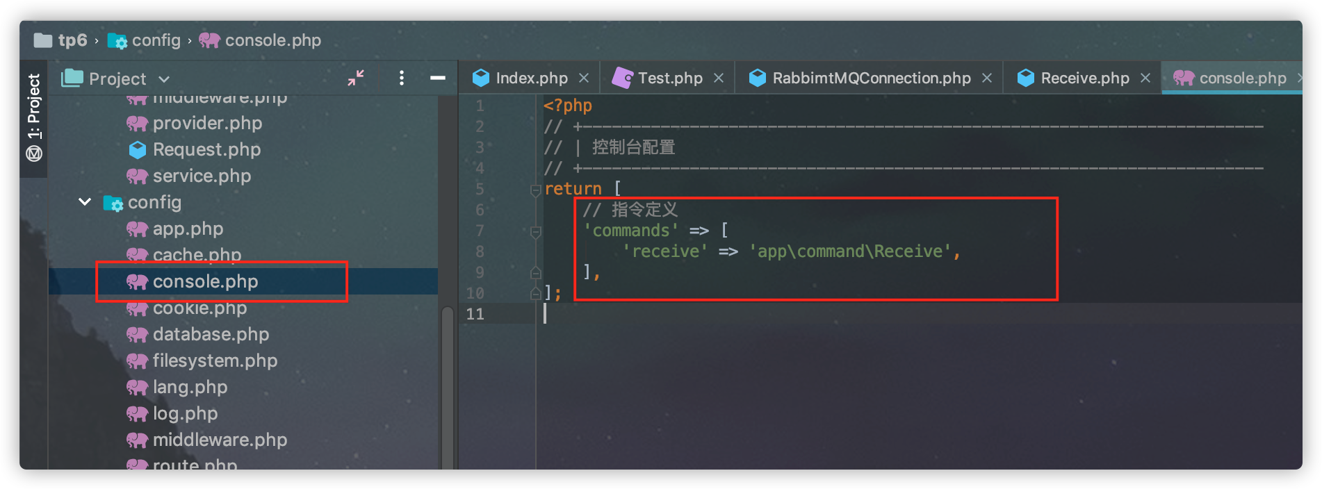 讯享网<?php / * Created by msciwang * User: fgc * Date: 2021-10-05 * Time: 11:58 * Desc: rabbimtMQ测试类 */ namespace app\command; use think\console\Command; use think\console\Input; use think\console\input\Argument; use think\console\input\Option; use think\console\Output; use PhpAmqpLib\Connection\AMQPStreamConnection; use PhpAmqpLib\Message\AMQPMessage; class Receive extends Command { protected function configure() { // 指令配置 $this->setName('receive') ->setDescription('rabbitmq queque'); } protected function execute(Input $input, Output $output) { $connection = new AMQPStreamConnection('localhost', '5672', 'guest', ''); $channel = $connection->channel(); // // 指令输出 $output->writeln("RabbitMQ start\n"); $output->writeln("RabbitMQ create success\n"); $channel->queue_declare('hello', false, false, false, false); $callback = function ($msg) use ($output) { $output->writeln("message is: $msg->body \n"); /ack应答机制 basic_consume第四个参数药设置false, $msg->delivery_info['channel']->basic_ack($msg->delivery_info['delivery_tag']); $channel->basic_consume('hello', '', false, false, false, false, $callback); / }; //多个消费者情况下,设置了均衡消费$channel->basic_qos(null, 1, null); $channel->basic_consume('hello', '', false, true, false, false, $callback); /while (count($channel->callbacks)) { $channel->wait(); }/ while ($channel->is_open) { $channel->wait(); } } }