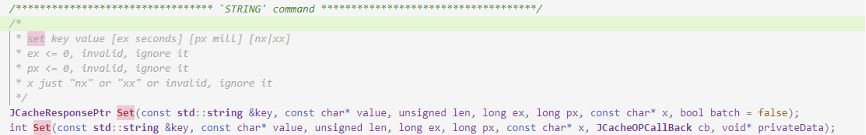 这上面是Set这个命令的两种调用方式,第一种是同步的调用,其中最后一个参数batch来控制是否做批量,其返回参数是一个结构体的智能指针,第二种是异步的调用,其中参数cb是回调函数,返回是整型