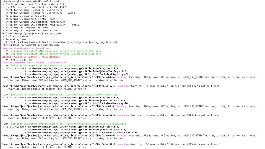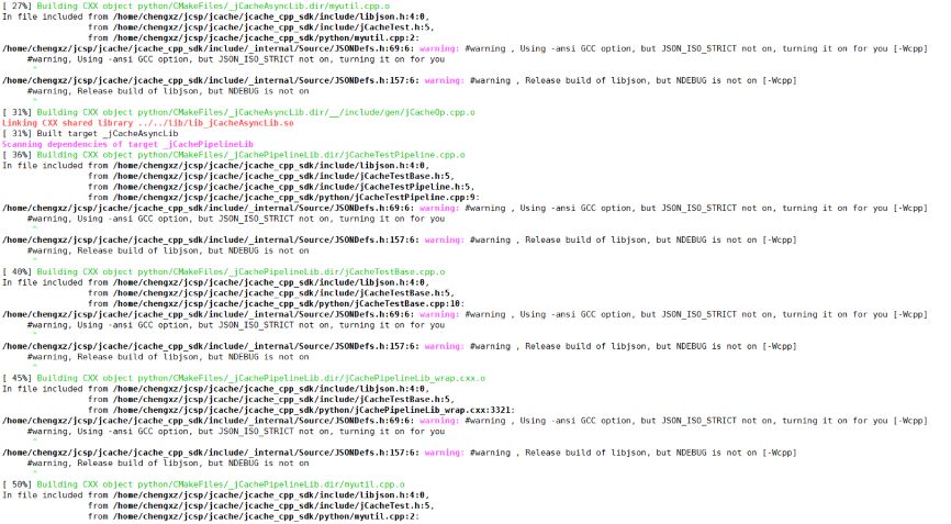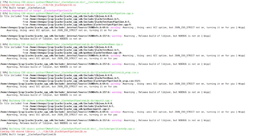 然后使用swig进行python化的转换,生成一个带有_wrap后缀是cxx的文件,这个文件和其他的一些cpp文件一起编译,就可以得到我们需要的so文件。下面是一段编译生成so文件的make输出: