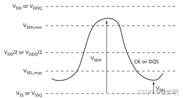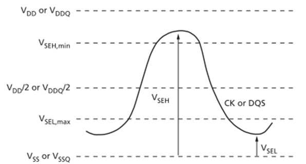 SSTL电平的输入结构基本上和HSTL相同,也是采用差分输入结构。差分一端接输入信号,另一端需要一个参考电压信号VREF。参考电压信号由所有存储器件和控制器共享,设计时需要保证控制器和存储器之间的压差要足够小,一般噪声都控制在1~2%范围内。类似HSTL电平,SSTL电平的输入门限也定义了AC和DC两个值,且都是参考VREF进行定义。