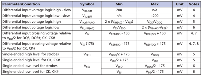 同样对于差分输入电平SSTL_15除了对单端信号的逻辑定义外也对差分逻辑、以及单端信号的交叉点范围进行了定义,如表XX所示。