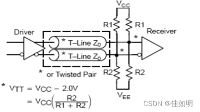 - 使用并联端接无疑要增加一个VTT电源,也可以采用戴维南匹配的方式等价实现VTT端接的效果;