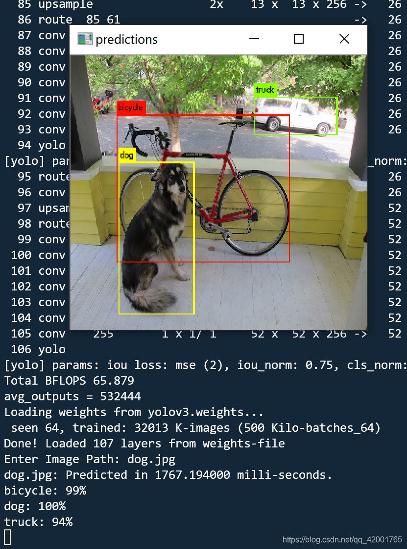 .\darknet_no_gpu.exe detector test cfg/coco.data cfg/yolov3.cfg yolov3.weights -thresh 0.25