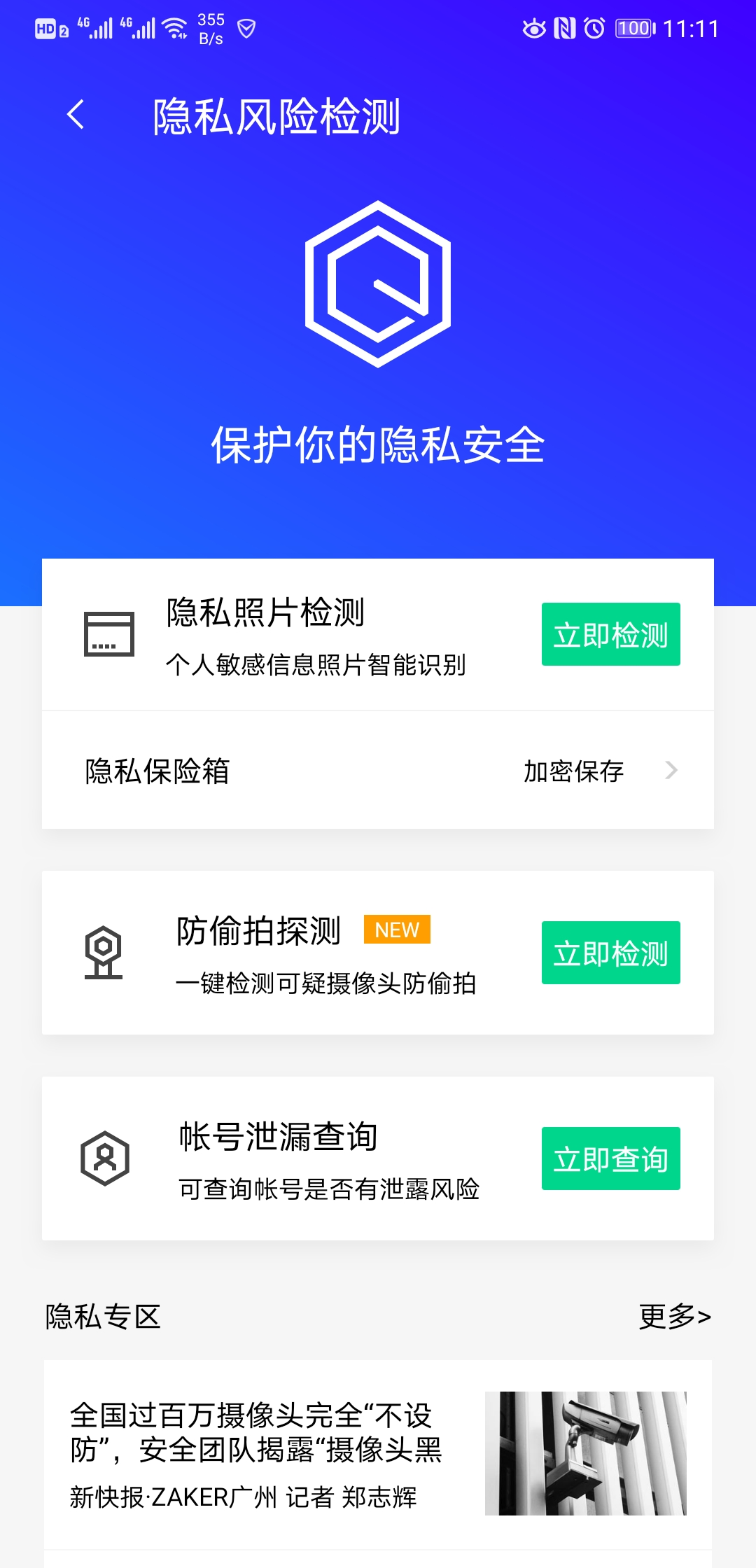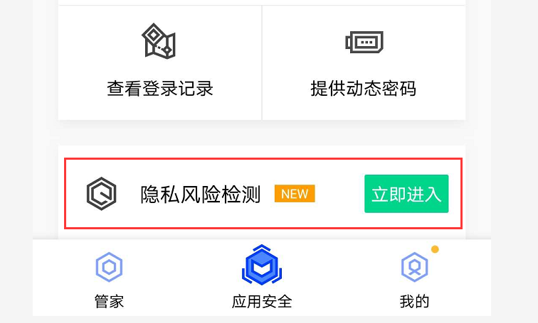 点击最下方的【应用安全】,有一个隐私风险的检查入口,点击立即进入。
