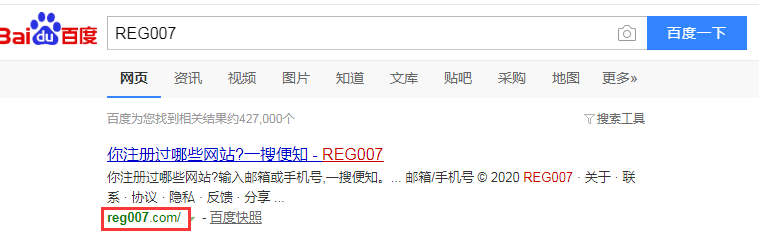 在百度直接输入REG007进行搜索,第一个网站就是(注意域名),通过这个网站,能够查询到的自己的手机号绑定了什么了,注意一下左上角,没有登录的查询结果只会显示出来3个,想要看到更多还是需要登录的。