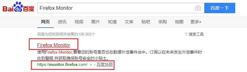 百度搜索Firefox Monitor ,就可以直接看到。这是火狐提供的一款互联网账号隐私数据泄露查询和通知服务,优点是数据库全面,国内外常见网站都有覆盖。