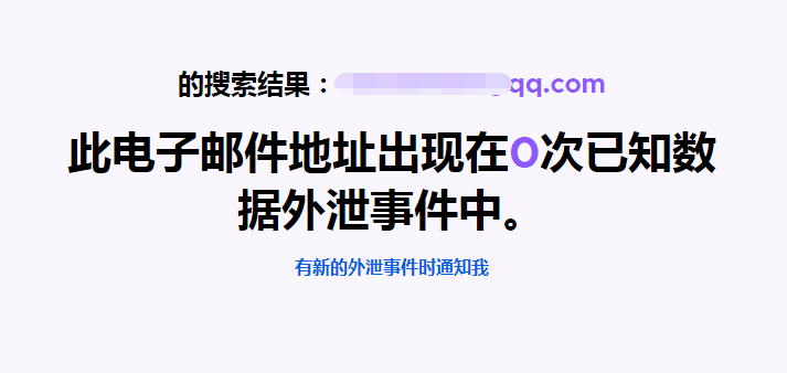 小编就输入了一个邮箱号,显示暂时没有外泄事情的,而且还可以绑定自己的邮箱,如果出现了相关邮箱的外泄事件,会发邮箱进行通知。
