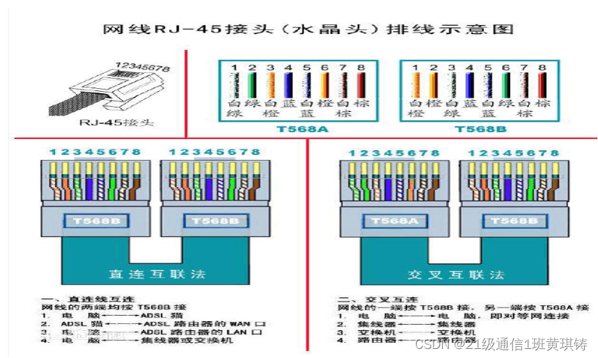 双绞线的顺序与RJ45头的引脚序号要—一对应。