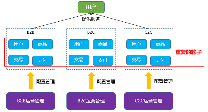 将一些公共业务和服务,如用户中心拆分成注册登录中心和用户中心,短信、文件、消息等各种公共服务,从业务系统中拆分剥离出来。