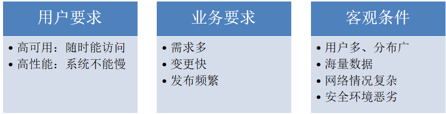 随着公司和业务进入快速发展时期,软件系统面临来自多方面的考验:
