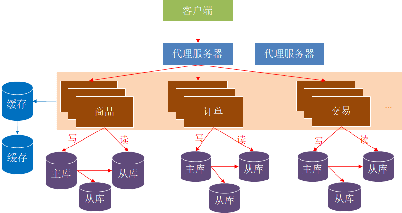 拆分成商品、订单、交易、用户、支付等多个系统,每个系统都都是多台服务器构成的集群。
