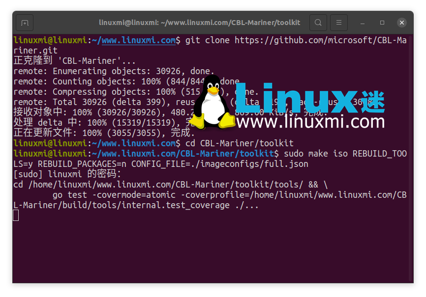 linuxmi@linuxmi:~/www.linuxmi.com$ git clone https://github.com/microsoft/CBL-Mariner.git