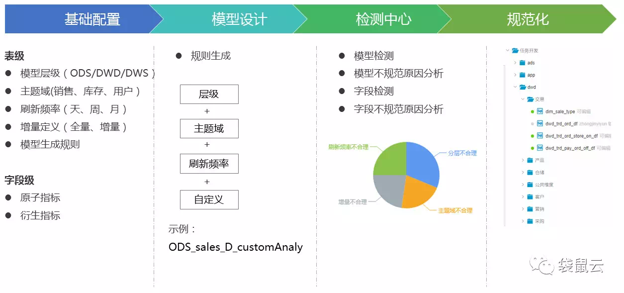 规则配置:可以配置表名必须由哪几个元素组成,比如表名=数据仓库所属层级+表所属主题+数据更新周期+增量/全量,按照这个规则,表名就会是