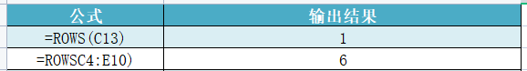 说明:①引用单元格时,表示只涉及到一行,输出结果为1。如输入“=ROWS(C13)”,输出结果均为1。