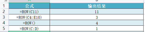 (2)作用:获取单元格或单元格区域的行序号