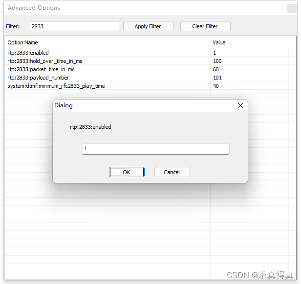 在filter中输入2833,再点击“apply filter”,过滤后的配置项如图。双击可以修改value。