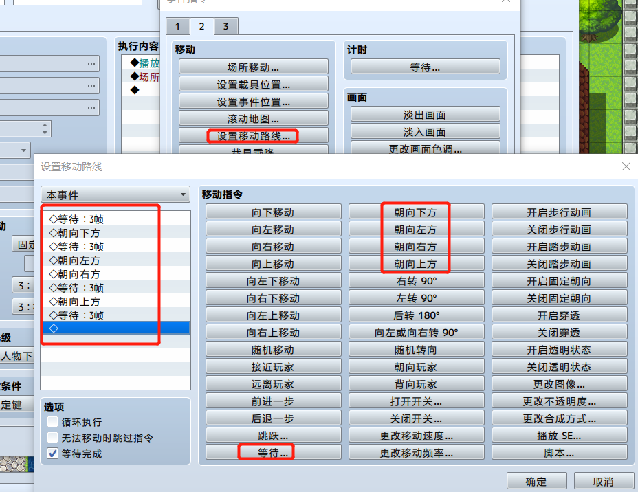 然后小男孩开始导数3个数(注意是并行执行,这样在倒数时主角才能移动) 倒数完成则开启B开关(执行事件3)