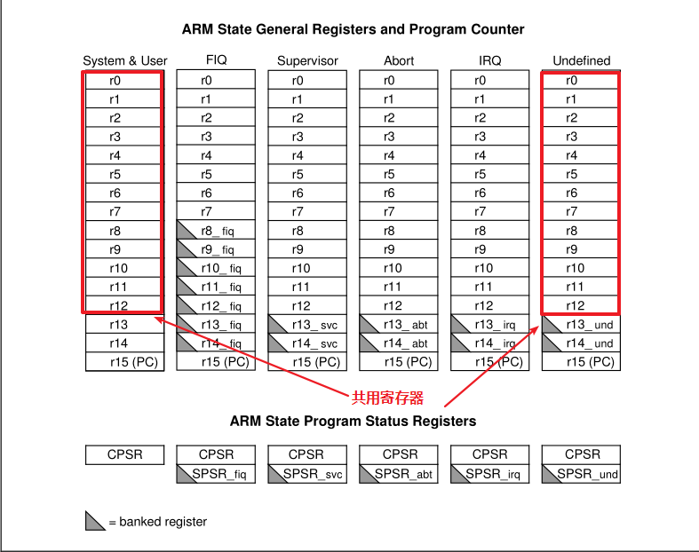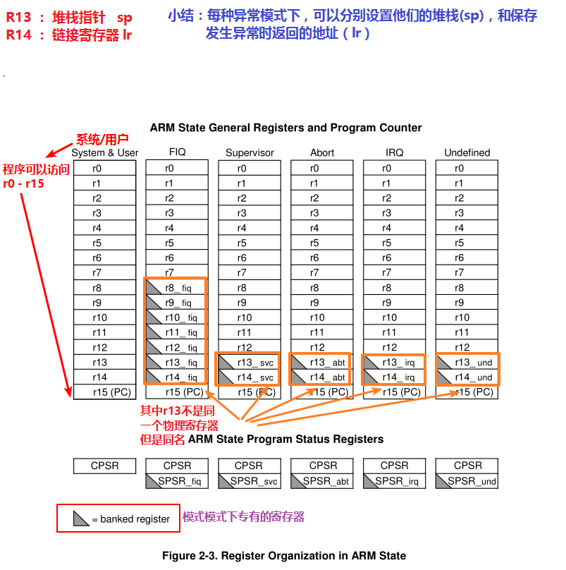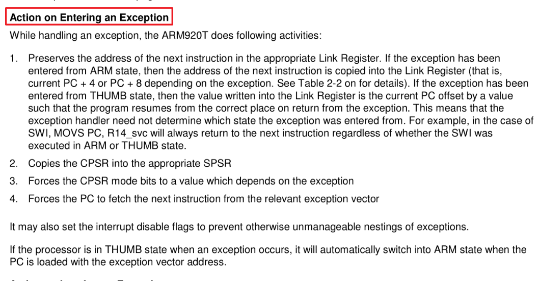 2.5.发生异常时,ARM state下的寄存器的变化或协同工作
